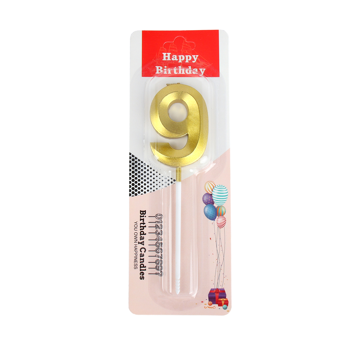 —Свеча в торт Цифра 9 золото 5 см