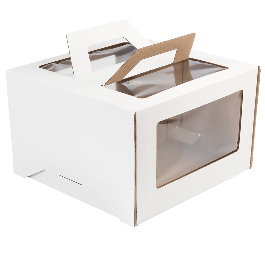 Коробка для торта с ручками белая 20х20х20 см