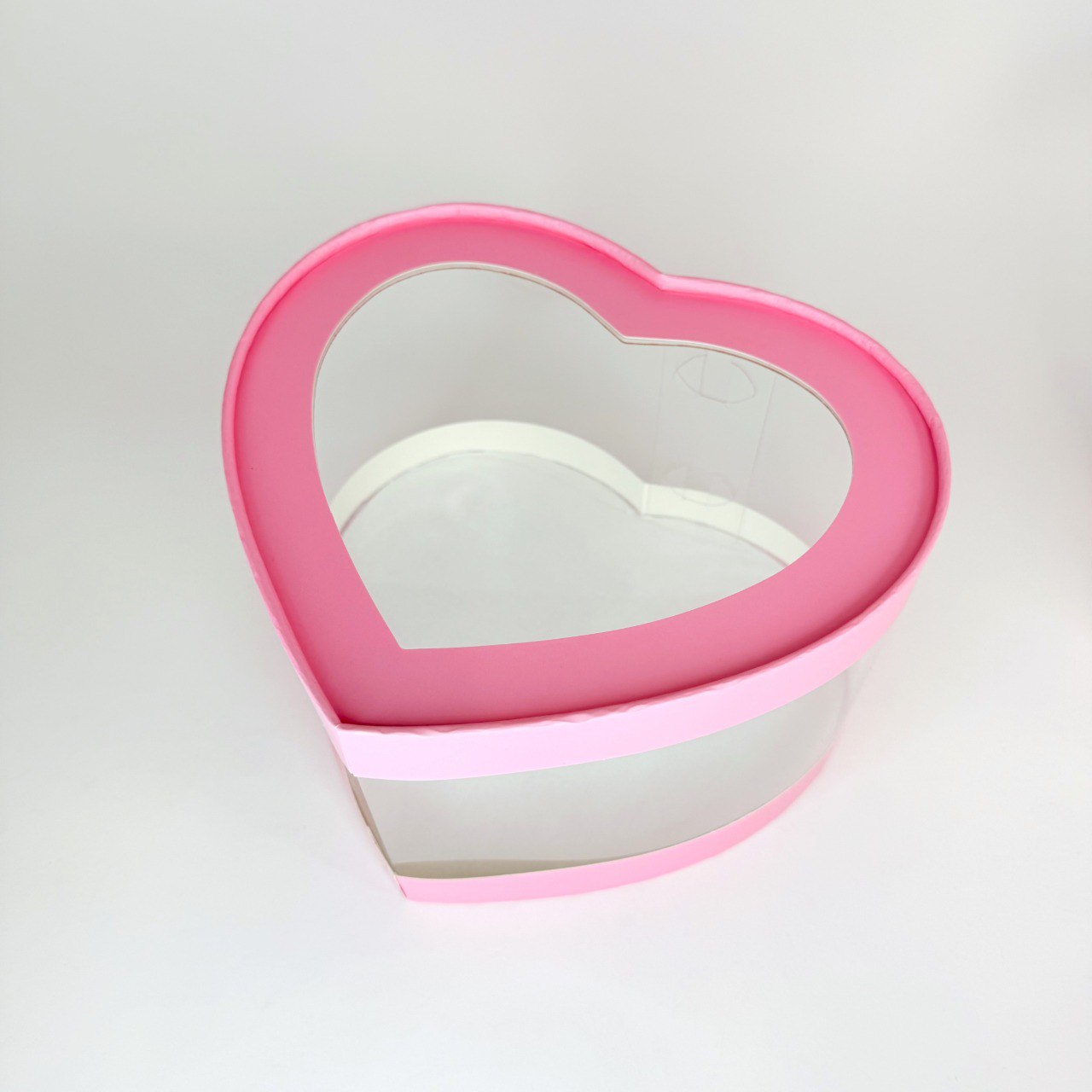 Коробка универсальная сердце РОЗОВАЯ с прозрачными стенками 215х180х100 мм